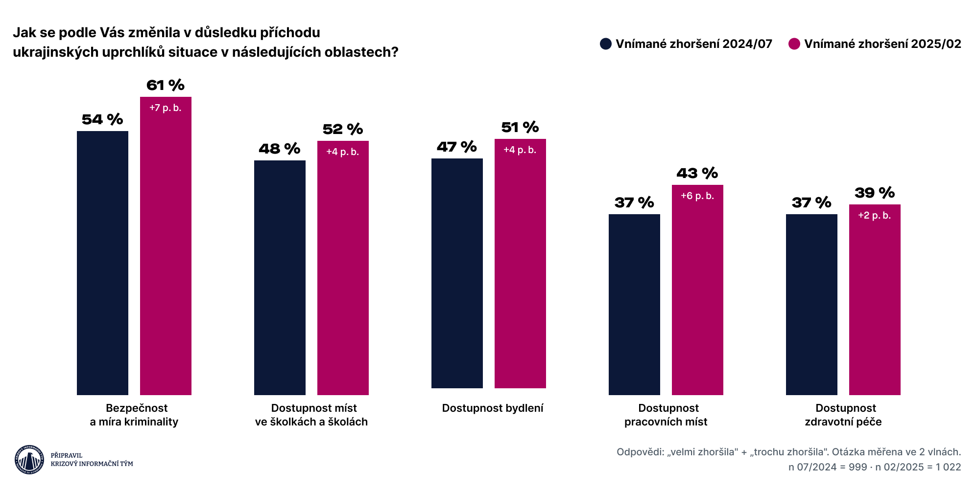 Pocit zhoršení bezpečnostní situace vlivem migrace z Ukrajiny narostl v populaci ze 54 na 61 %.