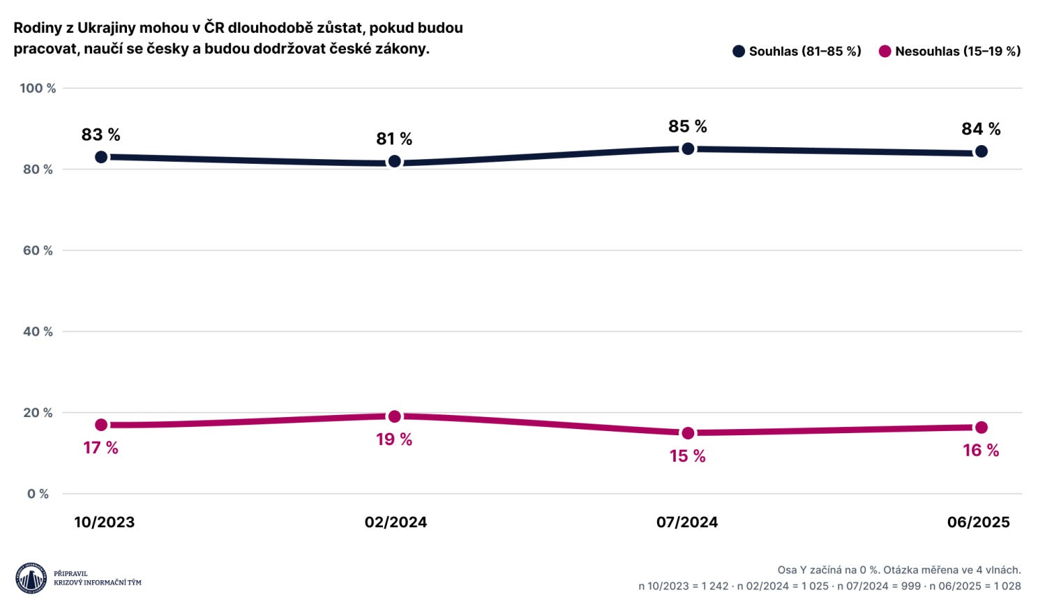 Více než 80 % populace stabilně souhlasí s tím, aby Ukrajinci mohli v Česku žít dlouhodobě, pokud splní jasné podmínky: